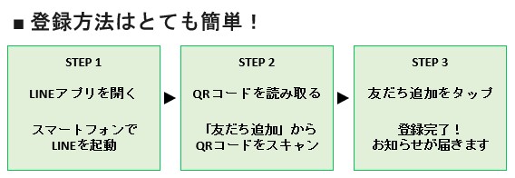 「LINE公式アカウント」の運用を計画しています。ご登録いただくと、以下の情報をLINEでお受け取りいただけます。